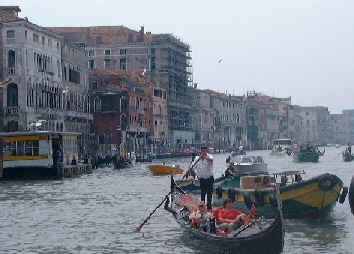 U Velikom kanalu, krivudajući između tromih vaporeta, jezdile su vitke gondole s kojih se čula pesma veslača-tenorista.